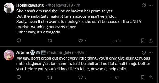 >>110323299Most people make their decisions based on what people are saying on twitter, including Cover and the girls.