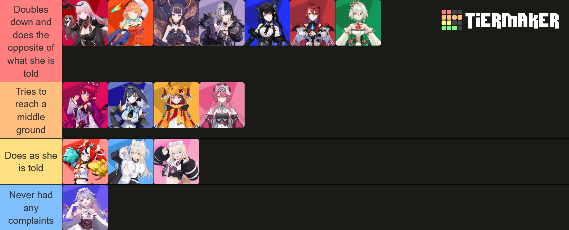 >>110318790Give what up? It was always the case since the beginning, she declared that she wanted to sing with them and that she likes them, she just said she prob wont collab with them. Dont kid yourself. People chose the wrong oshis hoping for something different and ignoring all the risk signs. There are ultra safe oshis and they chose to ignore them