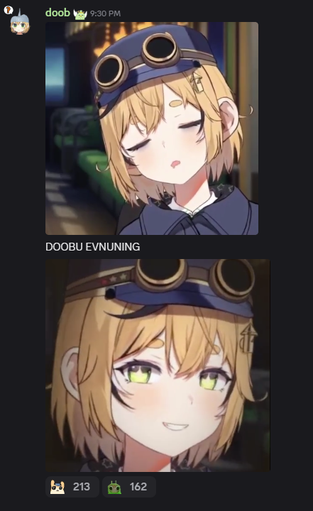 Dooby doko?—Check Cytubemate project for 24/7 Ame vods: https://awat.420699.xyz/Play Chiku Taku: https://watsonamelia.itch.io/chikutakuStream Chiku Taku: https://www.youtube.com/watch?v=fYVweqOW31w—Dooby's website for links and info: https://dooby3d.tv/Backup rentry and additional info: https://rentry.org/Doob3DStream Dooby's latest cover: https://www.youtube.com/watch?v=XEz0khXqsX8Stream Ratsune Miku's cover: https://www.youtube.com/watch?v=FuljADgNvOUUnofficial Archives: https://rentry.org/DoobyArchive—>Note that discussion about past-Ame is generally discouraged, the scope of this thread starts with Ame, moving forward from there.>Respect for other Holos and the rules that govern their respective threads is also important, so only if and when on topic, focus on one persona and avoid blending references
