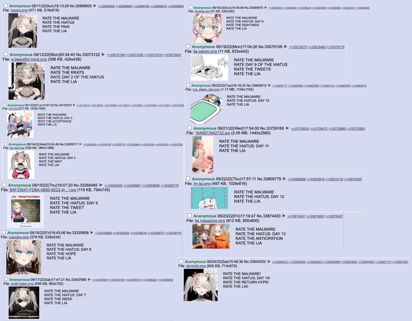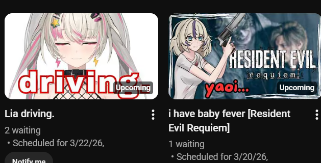 ϟ Lia Liker's Secret Clubhouse ϟ>NO GIRLS ALLOWEDChannel: https://www.youtube.com/c/RinkouAsheliaTwitter: https://twitter.com/rinkouasheliaSecret Twitter: https://x.com/wiawi_aSchedule: https://x.com/rinkouashelia/status/2031181371885105534ϟ Next time, on Lia ϟ>Lia caused a 48 car pile up resulting in 5 fatalities, she only broke a finger nail thoϟ Previously on Lia ϟ>gfe refundhttps://www.youtube.com/watch?v=bgn7oJJljWE>Girls Frontline Gooninghttps://www.youtube.com/watch?v=0QcqIMOf-xk>Final Fent XIV watchalong in the middle of the night only for the sickoshttps://www.youtube.com/watch?v=_mpyoTes3Rg>Lia is gonna get scared and threaten to pee her pants in RE9!https://www.youtube.com/watch?v=p_j1pt_bxp8ϟ Current Events ϟ>VALENTINES DAY 3D LIVE CONCERT WITH RUNIEhttps://www.youtube.com/watch?v=s4lmtMImAX8>Lia Valentine's Day merch is on sale now! Very Chinese!https://shop.phase-connect.com/collections/phase-of-the-heart-auspicious-hearts-collection>Wow! you can buy Lia's new 3d outfit!https://vlive-unite.booth.pm/items/7982255>Lia 3D live debut!https://www.youtube.com/watch?v=IRL-zrFDWocϟ Teen Idol Sensation ϟ>Lia the baby ballerina!https://www.youtube.com/watch?v=eFb9Bbpy1-I>3D debut duet with Mint!https://www.youtube.com/watch?v=xmbr-eO3Nc8>Marionette No Kokoro! [3D debut live]https://www.youtube.com/watch?v=Wuocvv0DMNA>World of Lia at the 2024 vtuber awards!https://www.youtube.com/watch?v=E2pK-g-UAWI>ANYC 2024 Teen Idol takes on New York concert!https://www.youtube.com/watch?v=3PKxPSiOmSUhttps://www.youtube.com/watch?v=bGIdCpB7uiE>Phase Origins x Mint hamtaro circlehttps://www.youtube.com/watch?v=ECALhhre7c8>Rising Higher- Lia Performance (Nikke 2.5 Year Anniversary)https://www.youtube.com/watch?v=bb4e7kYxSDA>Offkai 2025 Konton Boogie and Ashura-chan!https://www.youtube.com/watch?v=7ag9WLlnpGUhttps://www.youtube.com/watch?v=2oZKcGFJoN8>Offkai 2025 group performances! Kiraful Miracle Kirameiger & Write the Futurehttps://www.youtube.com/watch?v=EJFHGAXLIOohttps://www.youtube.com/watch?v=2_JMtDE8aAg>Valentines Day 3D Live!https://www.youtube.com/watch?v=1SAxhObRQHwhttps://www.youtube.com/watch?v=7xML6x6Z5dkϟ BUY BUY BUY ϟ>Visit the Lia shop! Plushies! Shirts! Dakis! Pins! Charms! Keychains! Oh my!https://pastebin.com/CwyAjBuc>Lia is in a real TCG!? OMG!https://oshipush.com/shop-2/>Free Lia 3D model! Yes, FREE!!!!https://ko-fi.com/s/409b01b34f>BUY THE LIA COFFEEhttps://shop.phase-connect.com/collections/coffee/products/black-coffee-ashelia-rinkou-custom-roastϟ Other useful links ϟ>New to Lia and are looking for VOD suggestions?https://rentry.org/LiaLikerVault>Free Lia desktop assistant!https://mega.nz/folder/JrtjCbhD#qZoHWqnoa8Qztf84Qlvq3Q>Cytube channel:cytuDOTbe/r/VODclubhouse (replace DOT with .)>Divegrass team:https://implyingrigged.info/wiki//lia/Remember to only love Lia, and never watch other girls. Only Lia will ever love you. ପ(๑•ᴗ•๑)ଓPrevious Thread: >>110287004