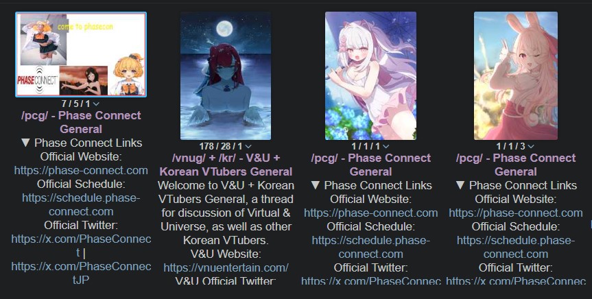 ▼ Phase Connect LinksOfficial Website: https://phase-connect.comOfficial Schedule: https://schedule.phase-connect.comOfficial Twitter: https://x.com/PhaseConnect | https://x.com/PhaseConnectJPOfficial Character References: https://rentry.org/pcgreferencesOfficial Twitch Archive Channels: https://rentry.org/pcgtwitcharchiveUnofficial Phase Connect Archives: https://rentry.org/pcgunofficialarchive––––––––––––––––––––––––––––––––––◆【Lia】https://x.com/rinkouashelia | https://youtube.com/RinkouAshelia | https://twitch.tv/asheliarinkou◆【Utatane Nasa】転寝ナサ (JP) https://x.com/UtataneNasa | https://youtube.com/UtataneNasa | https://twitch.tv/utatanenasa◆【Hakushika Iori】白鹿いおり (JP + EN) https://x.com/hakushikaiori | https://youtube.com/HakushikaIori | https://twitch.tv/iorihakushika◆【Fujikura Uruka】https://x.com/fujikurauruka | https://youtube.com/FujikuraUruka | https://twitch.tv/fujikurauruka◆【Shisui Michiru】紫翠みちる (JP) https://x.com/shisuimichiru | https://youtube.com/ShisuiMichiru | https://twitch.tv/michiru_shisui◆【Tenma Maemi】https://x.com/tenmamaemi | https://youtube.com/TenmaMaemi | https://twitch.tv/tenma◆【Pipkin Pippa】https://x.com/pipkinpippa | https://youtube.com/PipkinPippa | https://twitch.tv/pippa––––––––––––––––––––––––––––––––––◆【Kaneko Lumi】https://x.com/kaneko_lumi | https://youtube.com/KanekoLumi | https://twitch.tv/kanekolumi◆【Fuura Yuri】[Terminated] https://x.com/AmarisYuri | Archive: https://youtube.com/@TheNationalFuuraYuriArchive◆【Dizzy Dokuro】https://x.com/dizzydokuro | https://youtube.com/@dizzydokuro | https://twitch.tv/dizzydokuro◆【Jelly Hoshiumi】https://x.com/jellyhoshiumi | https://youtube.com/@jellyhoshiumi | https://twitch.tv/jellyhoshiumi◆【Ember Amane】https://x.com/emberamane | https://youtube.com/@EmberAmane | https://twitch.tv/emberamane◆【Clio Aite】https://x.com/ClioAite | https://youtube.com/@ClioAite | https://twitch.tv/clioaite◆【MariMari_en】https://x.com/MARIMARI_EN | https://youtube.com/@MARIMARI_EN | https://twitch.tv/marimari_en◆【Eepy Sleepy】https://x.com/EepySleepyCh | https://youtube.com/@EepySleepyCh | https://twitch.tv/EepySleepy––––––––––––––––––––––––––––––––––◆【Remilia Nephys】https://x.com/Remilia_Nephys | https://youtube.com/RemiliaNephys | https://twitch.tv/remilianephys◆【Chisaka Airi】https://x.com/ChisakaAiri | https://youtube.com/ChisakaAiri | https://twitch.tv/chisakaairi◆【Amanogawa Shiina】https://x.com/AmanogawaShiina | https://youtube.com/AmanogawaShiina | https://twitch.tv/amanogawashiina◆【Himemiya Rie】https://x.com/HimemiyaRie | https://youtube.com/HimemiyaRie | https://twitch.tv/himemiyarie◆【Erina Makina】https://x.com/ErinaMakina | https://youtube.com/ErinaMakina | https://twitch.tv/erinamakina◆【Komachi Panko】https://x.com/komachipanko | https://youtube.com/KomachiPanko | https://twitch.tv/komachipanko––––––––––––––––––––––––––––––––––◆【Runie Ruse】https://x.com/RunieRuse | https://youtube.com/@RunieRuse | https://twitch.tv/RunieRuse◆【Eimi Isami】https://x.com/eimiisami | https://youtube.com/@eimiisami | https://twitch.tv/eimiisami◆【Muu Muyu】https://x.com/Muu_Muyu | https://youtube.com/@MuuMuyu | https://twitch.tv/MuuMuyu◆【Hikanari Hina】https://x.com/HikanariHina | https://youtube.com/@HikanariHina | https://twitch.tv/HikanariHina◆【Saya Sairroxs】[Phase Citizen] https://x.com/sayasairroxs | https://youtube.com/@sayasairroxs | https://twitch.tv/sayasairroxs––––––––––––––––––––––––––––––––––◆【Kannagi Loki】巫ロキ (JP) https://x.com/kannagiloki | https://youtube.com/@kannagiloki ◆【Kokoromo Memory】[Phase Citizen] https://x.com/kokoromomemory | https://youtube.com/@kokoromomemory_ | https://twitch.tv/kokoromomemory◆【Gram Pico】倉夢ぴこ (JP) https://x.com/grampico_ | https://youtube.com/@grampico | https://twitch.tv/grampico◆【Ayase Yuu】絢世ユウ (JP) https://x.com/ayaseyuuu | https://youtube.com/@ayaseyuu | https://twitch.tv/ayaseyuu_◆【Kaminari Clara】[Graduated] https://x.com/kaminariclara_ | https://youtube.com/@kaminariclara | https://twitch.tv/kaminariclara––––––––––––––––––––––––––––––––––◆【Malice Evermore】https://x.com/MaliceEvermore | https://youtube.com/@maliceevermore | https://twitch.tv/maliceevermore◆【Nitya Nil】https://x.com/Nitya_Nil | https://youtube.com/@Nitya_Nil | https://twitch.tv/nitya_nil◆【Wilhelmina Frost】https://x.com/wilhelminafr0st | https://youtube.com/@wilhelminafrost | https://twitch.tv/wilhelminafrost◆【Bibi Biscuit】https://x.com/BibiBiscuitCh | https://youtube.com/@bibibiscuitch | https://twitch.tv/bibibiscuitch◆【Anya Nyabyss】https://x.com/AnyaNyabyss | https://youtube.com/@AnyaNyabyss | https://twitch.tv/anyanyabyss◆【Sinon Sinfonia】https://x.com/SinonSinfonia | https://youtube.com/@SinonSinfonia | https://twitch.tv/sinonsinfoniaPrevious Thread: >>110360966