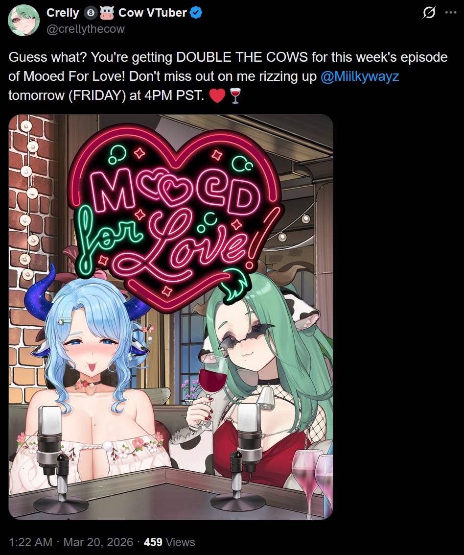 Coffee Edition>What is /lig/?/lig/ is a thread for viewers to find, share, and discuss indie vtubers who have on average 500 viewers or more.>Why /lig/?Large indie vtubers have more net fans, but they are outnumbered by 2views by the thousands. This is a thread for the VIP, regardless of what language they stream on.>Can I shill my 499view oshi here?Considering averages fluctuate widely, all the way down to 100 is reasonable. The minimal requirement however is being Twitch partner or the YouTube equivalent in numbers.>Wait isn't that one a corpo?/lig/ is a thread for chuubas of a decent size who aren't defined by their corporate branding, either due to the small size of the corporation or the independence and lack of oversight granted to the talents>/lig/ Numbershttps://lignumbers.neocities.org/>Twitch Clips Guidehttps://pastelink.net/34vd5>VOD Archival Guidehttps://rentry.org/Vod_Archival_Guide>/lig/ VOD Archivehttps://rentry.org/Indie_Vod_Archives_lig_>Koikatsu cardshttps://mega.nz/folder/JYtkXJwL#07gAQCQqI_9FsmX9oQJKSA>/lig/ Wheel of Nameshttps://wheelofnames.com/5jh-93j>Tiermakerhttps://tiermaker.com/create/-lig--16586688-3>/lig/ Chuuba Birthday Calendar (WIP)https://www.canva.com/design/DAE-XgWodVg/ofLz4QC1yPPQ4T6TTAE0fw/edit?utm_content=DAE-XgWodVg>Upcoming BirthdaysMarch 20th - ShirahikoMarch 25th - Rokoko PrufeiMarch 26th - Michi MochieveeMarch 28th - CyphiMarch 31st - Nina SaotomeApril 2nd - Honey GoblinApril 11th - Ume AinoApril 18th - SarueiApril 19th - Yoclesh & ZumaApril 23rd - Coqui & Limealicious & MomotexxApril 24th - Sugi Aoki>OC material for the OPhttps://mega.nz/folder/IIVD1IaJ#cfsRhWdJvzneIoG8HZUPuw>/lig/booruhttps://ligbooru.moe/>Duckshttps://www.twitch.tv/dashducks (embed) (embed) (embed) (embed)Other useful threads:>>>/vt//big/>>>/vt//corpo/>>>/vt//choc/>>>/vt//flip/>>>/vt//haha/>>>/vt//indie/>>>/vt//mint/>>>/vt//swarm/>>>/vt//vrt/>>>/vt//xvsj+/Previous Thread: >>110388689