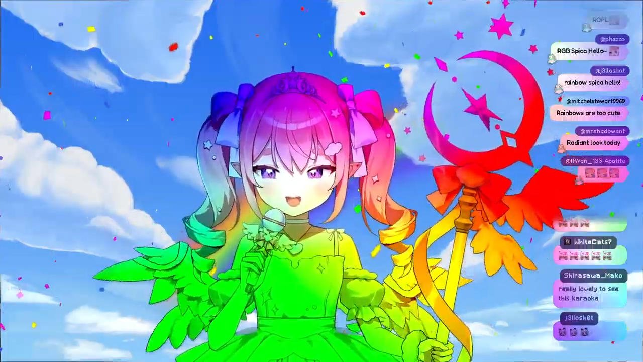 Spica's really rare Thursday karaoke (usually Sunday), singing songs starting with R, for rainbowshttps://www.youtube.com/watch?v=wJEJ0Cbi23shttps://www.twitch.tv/kirispica