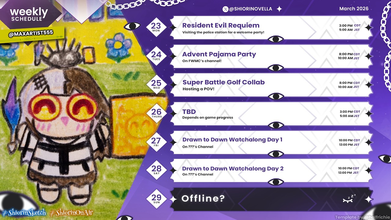 >>110491065>Shiori's scheduleShe didn't post one yet.