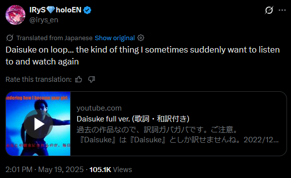 >IRyS asked for a sololive for her 1m wish