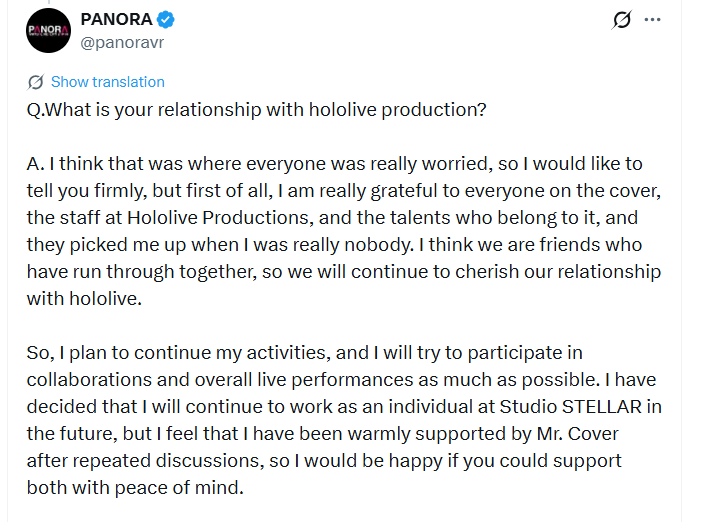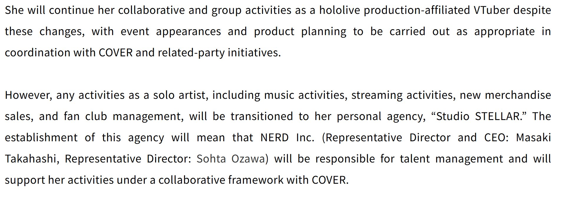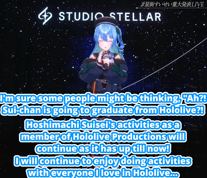 Basically Suisei will go on as a regular holo streaming and shit with the girls but now she got her own studio that will handle her music shit and her lives and concerts
