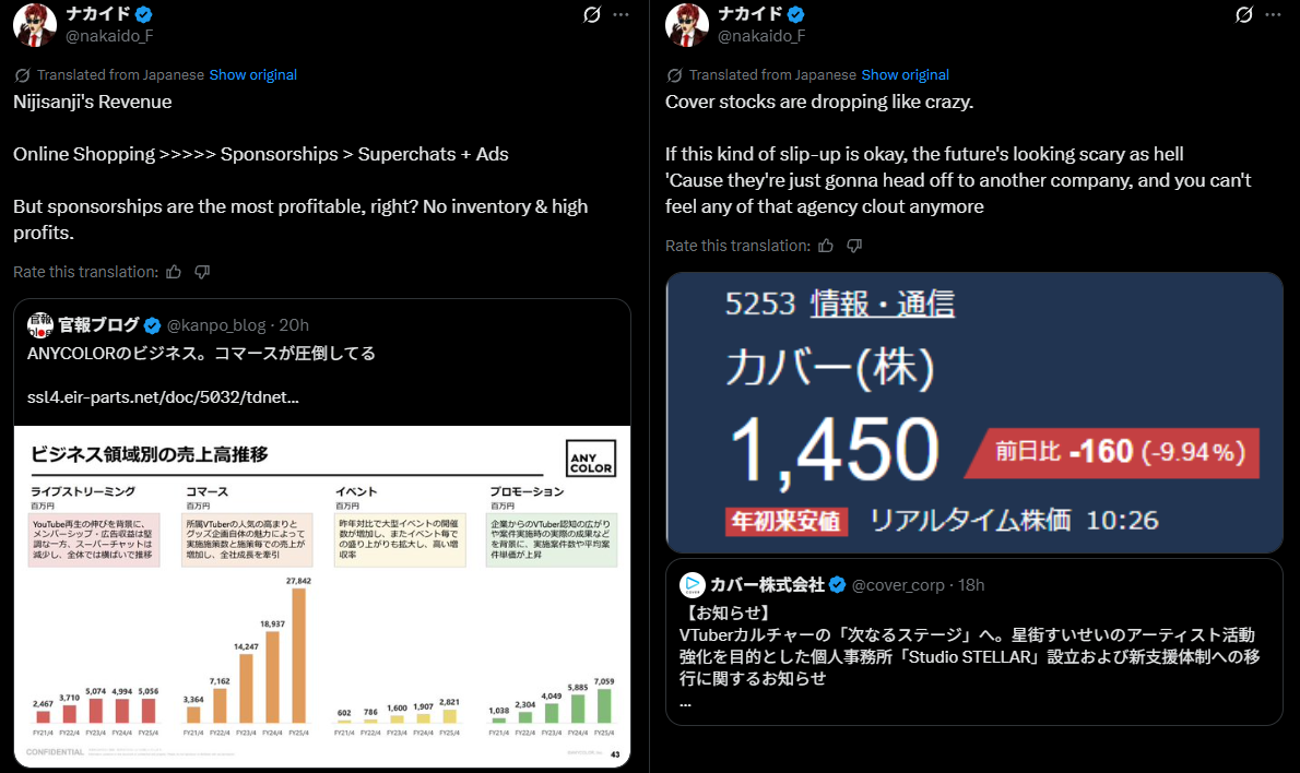 I think that has nothing to do with it and you’re just coping, but it doesn’t change my original point. The fact that Matsuri switched sides and Cover isn’t paying anything to the Homos anymore, shows that something is going on behind the scenes