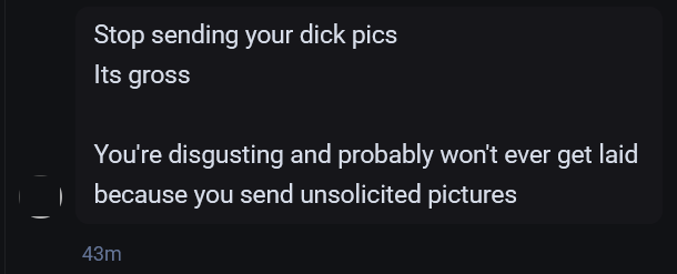 If I had gay men sending me their penis I'd be like "nice cock dude. keep it up king"