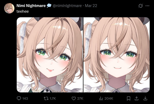 >>110484518Yeah so? That tweet literally isnt about pippa. Its not even a retweet by pippa its a straight nimi tweet nigga you're dumb.