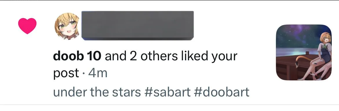 >>110537364Dooby being back and retweeting Sabadoob art recently means that she's okay at least.