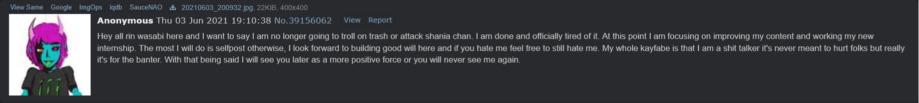 It would be extremely funny if neither of these guys were this rin wasabi person and you niggas were dragging some rando into internet microdrama for no reason