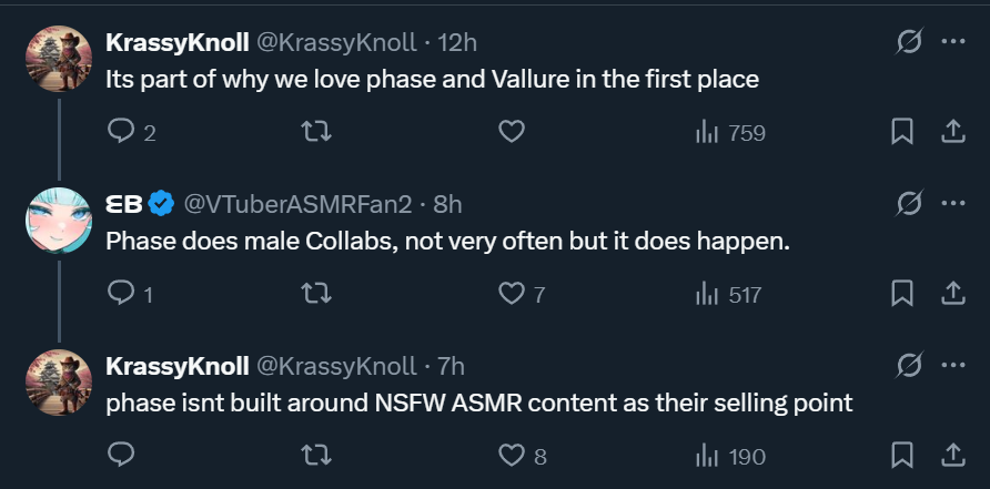 >>110502227Oh bitch please, the only thing we want is for them not to collab with each other.Anything further than that and you're just stalking and policing their off-stream relationship.