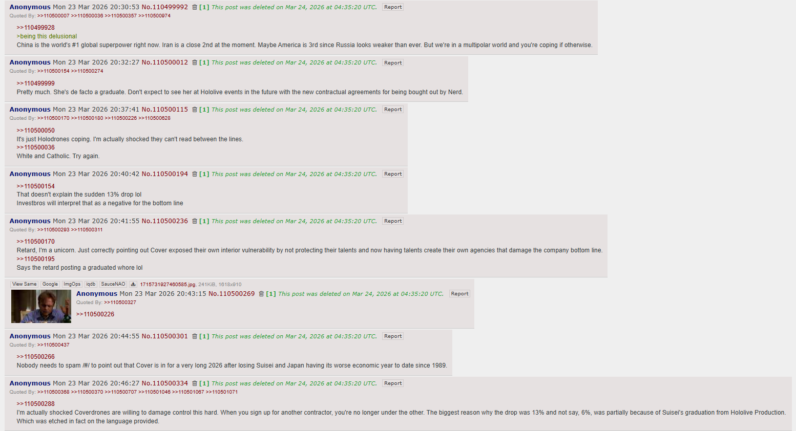 >>110501754Absolute chaos. Marine posted some pretty damning things about management that shows Cover to be a Black Company