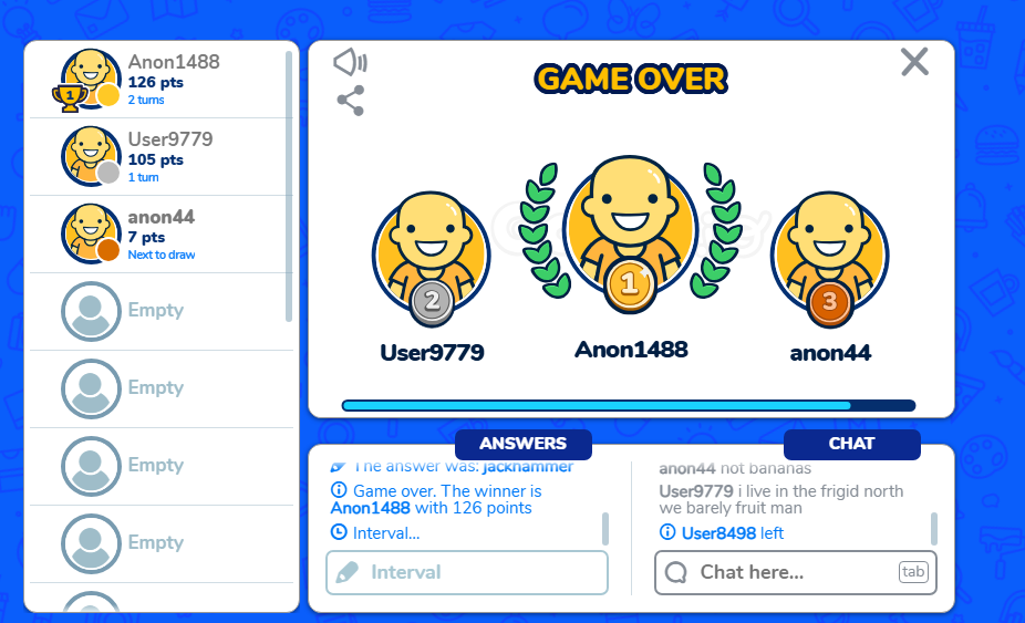 >>110502027ggs, i was going to fucking win but i quit on accident (i was gremanyahu)... i will get you next time anon1488...