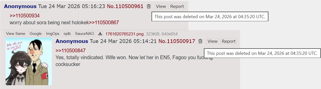 >>110502551 (me)Holy mental illnesshttps://archive.palanq.win/vt/search/tnum/110499360/deleted/deleted/