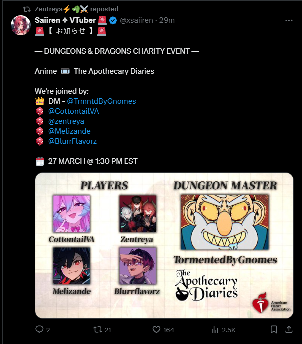 https://x.com/xsaiiren/status/2036631656132386965Mel, Kuro and Michi D&D with Saii on Saturday