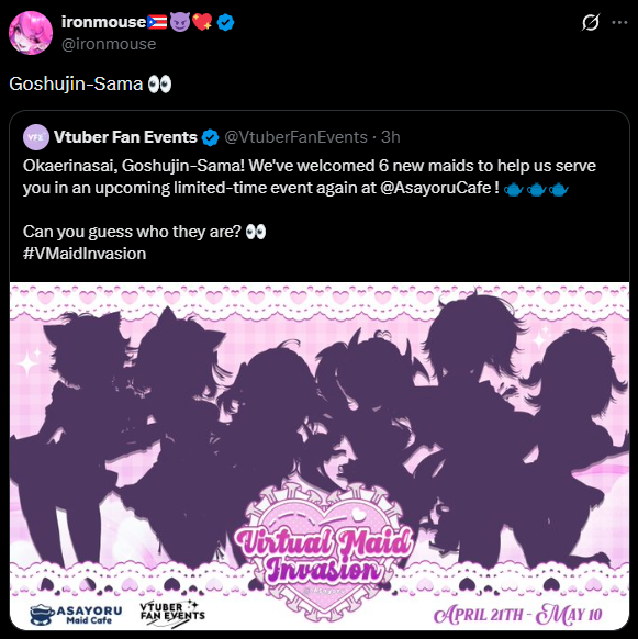 So I can see Henya, Mouse Kson and michi Who could be the other 2? https://x.com/VtuberFanEvents/status/2036609011148329404