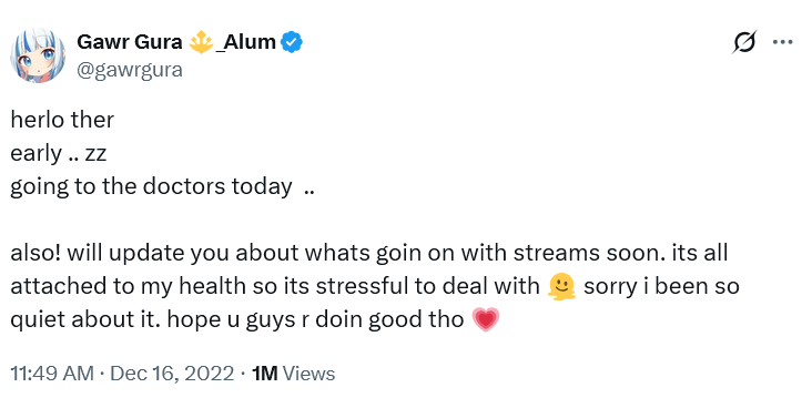>>110512900>or maybe she is sickGood bait and no one believes that in 2026. I do think Gura had valid reasons for constantly fighting with management but she was burning out when she left Hololive. I somewhat understand the financial reasons why Saba continued with the lolicon stuff but it's really obvious that she hates it and was struggling to stream even when collabing with Dooby.