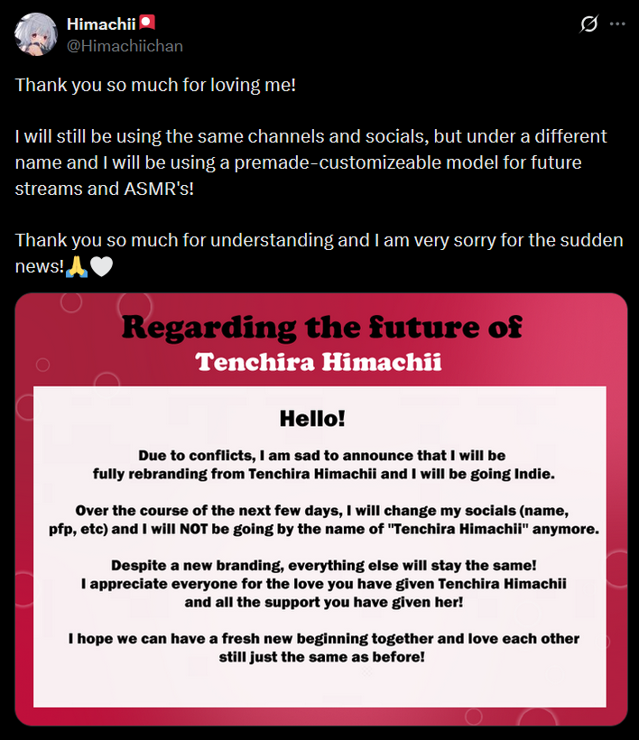 >>110528006Told Hima either Hima does things her way or she will take back the IP, Hima could buy the IP if she wants to
