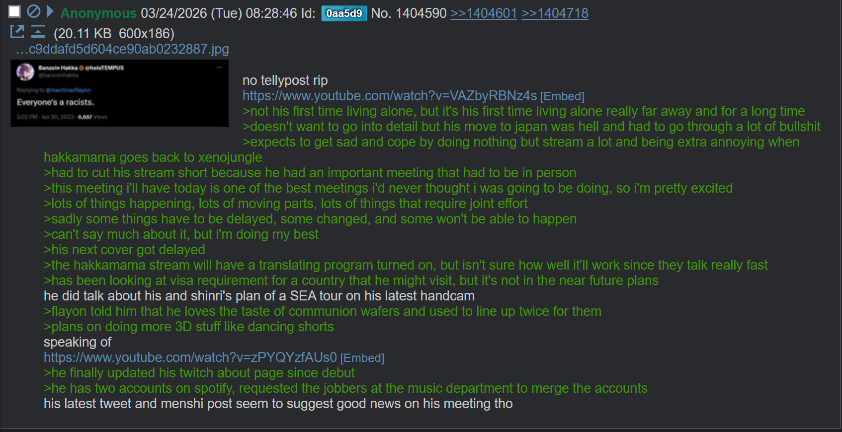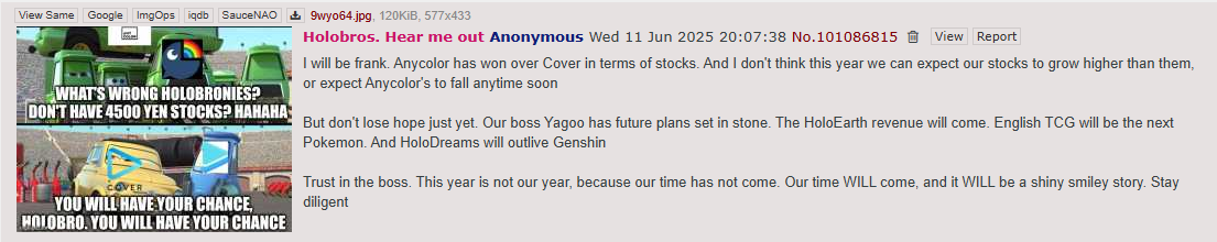 monkey paw: hololive posts will disappear for majority of holofans overnight and they'll be forced unfunny filipino youtuber content on their feed.