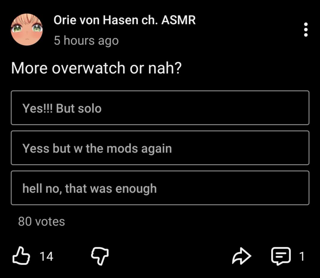 >>110530764Not even using her ASMR subchannel either. Wonder what's going on.
