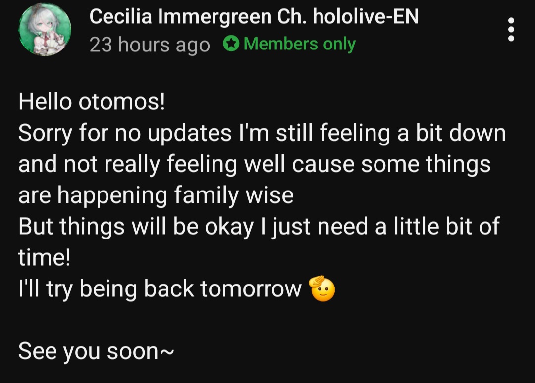 >>110536715>NerissaShe doesn't need to pretend she likes holos anymore, she will join the next homo Live watchalong though (if they ever get another one lmao)>KroniiMaking up for lost time with gymbro>CeciliaToo busy with "family problems">ERBShe's visiting Flipland to help Jutard with the home hunting since she's moving in with him