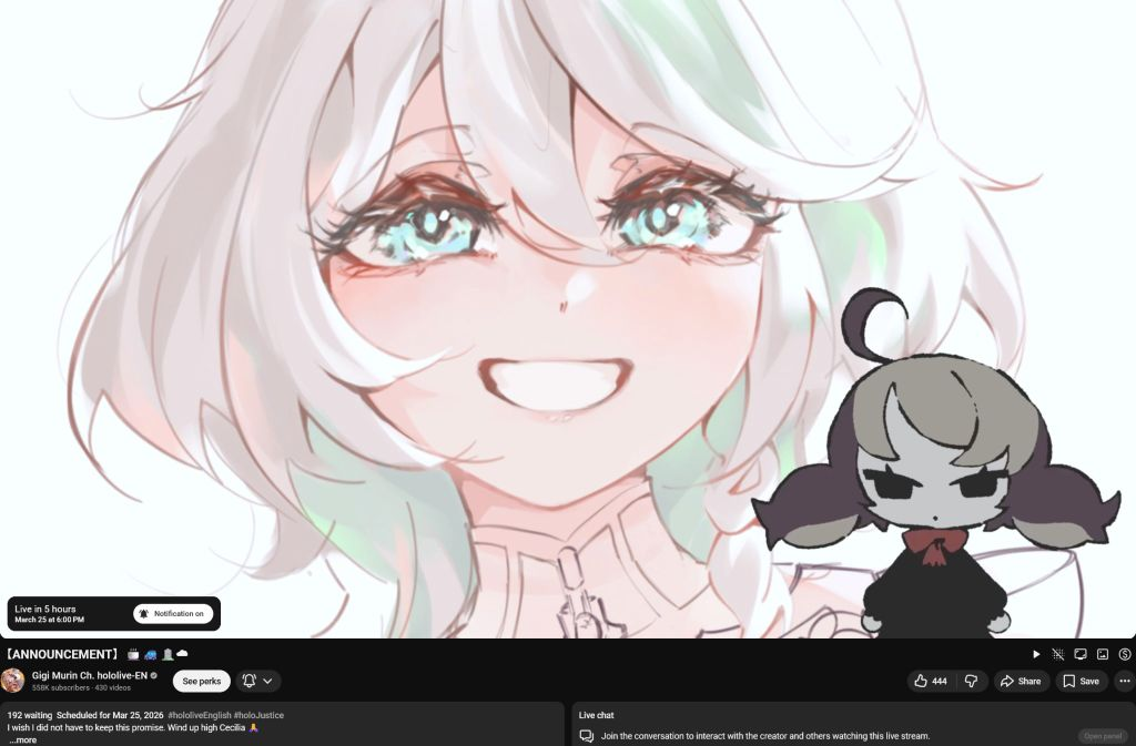 >big Takotori concert watchalong >no Nerissashe's finally showing her true colors. Says Kiara is her oshi but can't be bothered to join. I guess Octavio is her real oshi