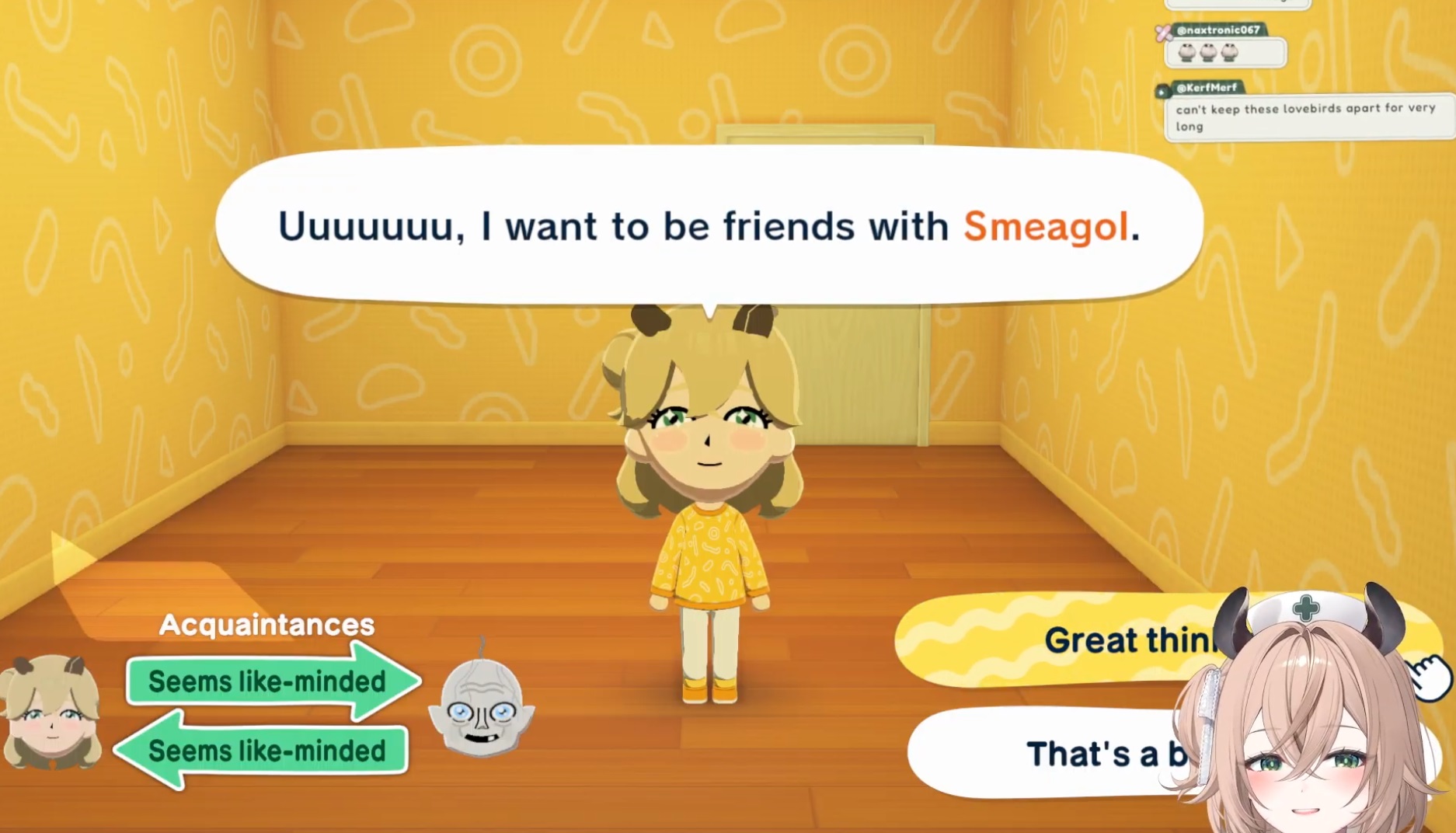 >nimi is doing a weird bit where she made her character is going to marry smeagol