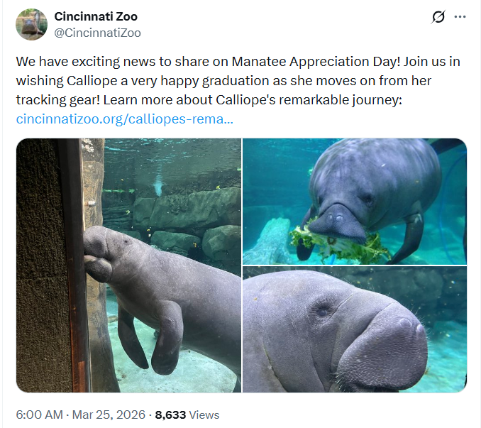 https://x.com/CincinnatiZoo/status/2036790303336669212Calliope graduation today