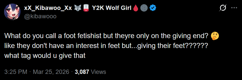 >>110541764Just do it on twitter like ashton or fang. And get a pedicure and show soles.