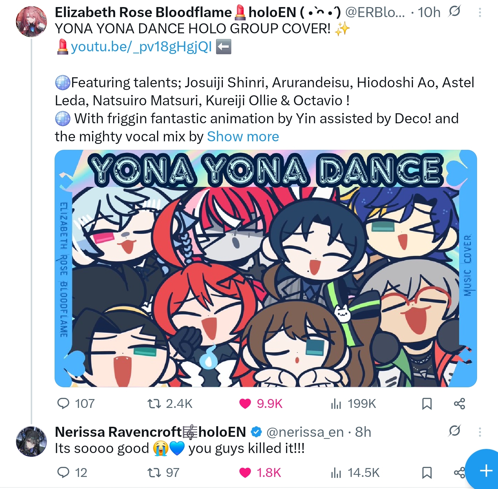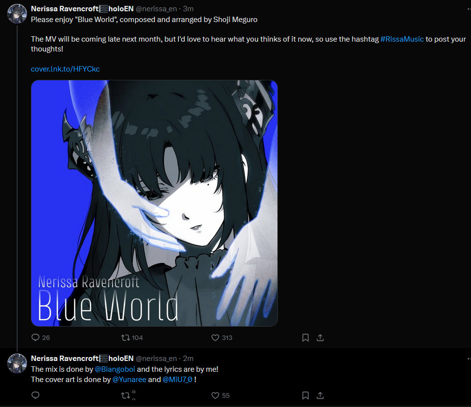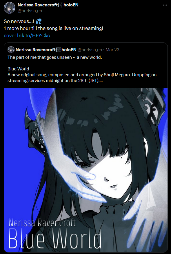 Not surprised, Nerissa herself is nijicoded, I wouldn't be surprised if she initially wanted to get into nijisanji, but was rejected, or Cover accepted her earlier, remind me, did she get into Hololive on her second try?