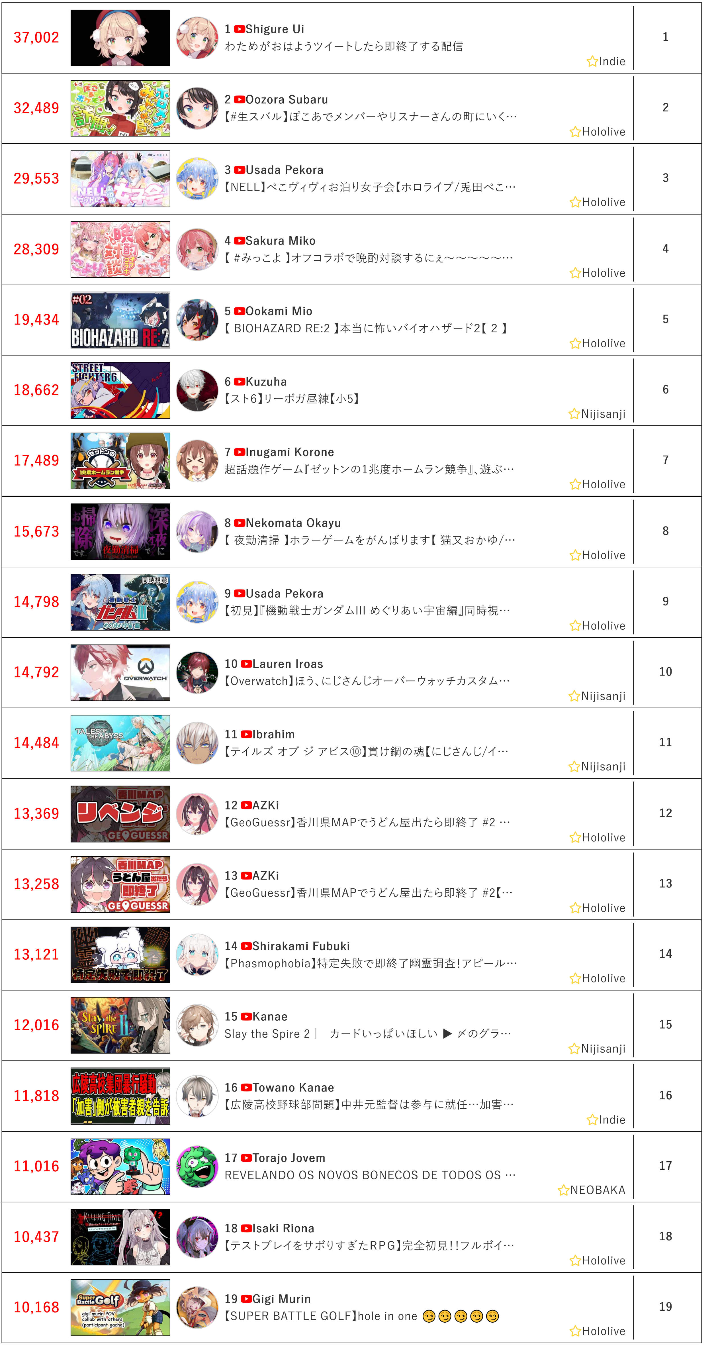 >>110568311>>37,002: Shigure Ui (Indie)>>32,489: Subaru (Hololive)powerful oyakodon