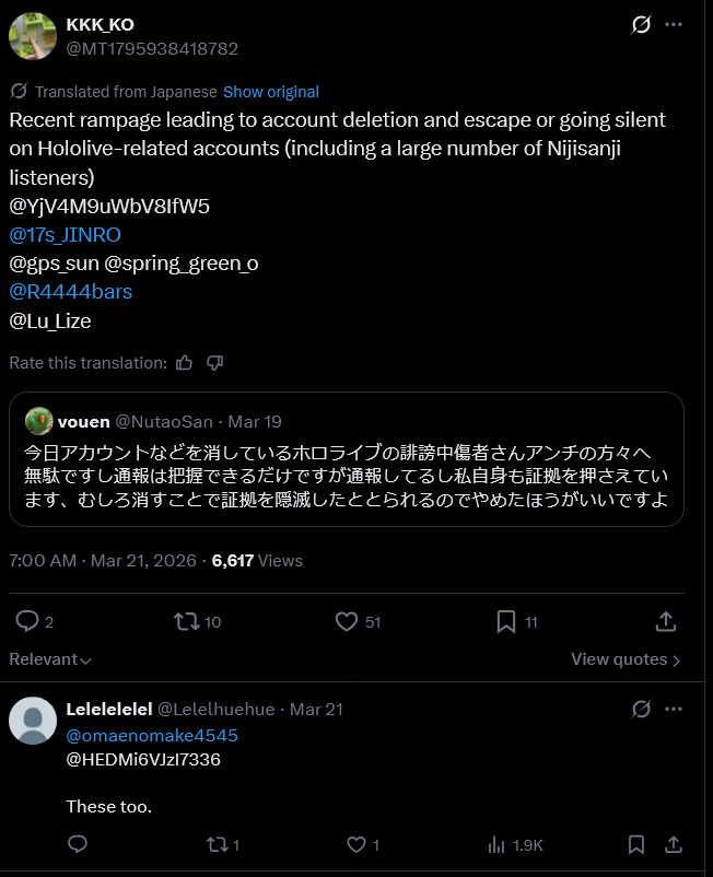 https://x.com/nhk_osaka_JOBK/status/2037109885297713576>HoloJPLunaPekoraTowaWatameAkiSubaruAyameMioSuiseiFlareLa+NeneLuiKoroneNoelSoraLamyAZKiMarineRobocoChocoOkayuIroha>HoloIDKoboMoonaRisuZeta>HoloENBaeKiaraKroniiIRySInaMori>DEV_ISRadenHajime>NijiJPMitoRyushenSasakiIbrahimFuwaKanaeKaedeToyaHoshikawaYashiroAngeLizeLunlunKuzuhaArsSalomeChimaToko>NijiENLucaVox>VspoHinanoNoahMet>KamitsubakiKAF>NeoporteHal>Indie/SoloUiAiWhale Taylor (https://x.com/whaletaylor)Natori SanaSakunaFuji AoiPeanutKawasaki Sui (https://x.com/Sui_Kawasaki)PatraTamaki