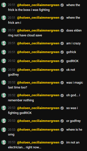>>110567608Who cares about elden ring in 2026 nobody would mind if she dropped this game and played something else