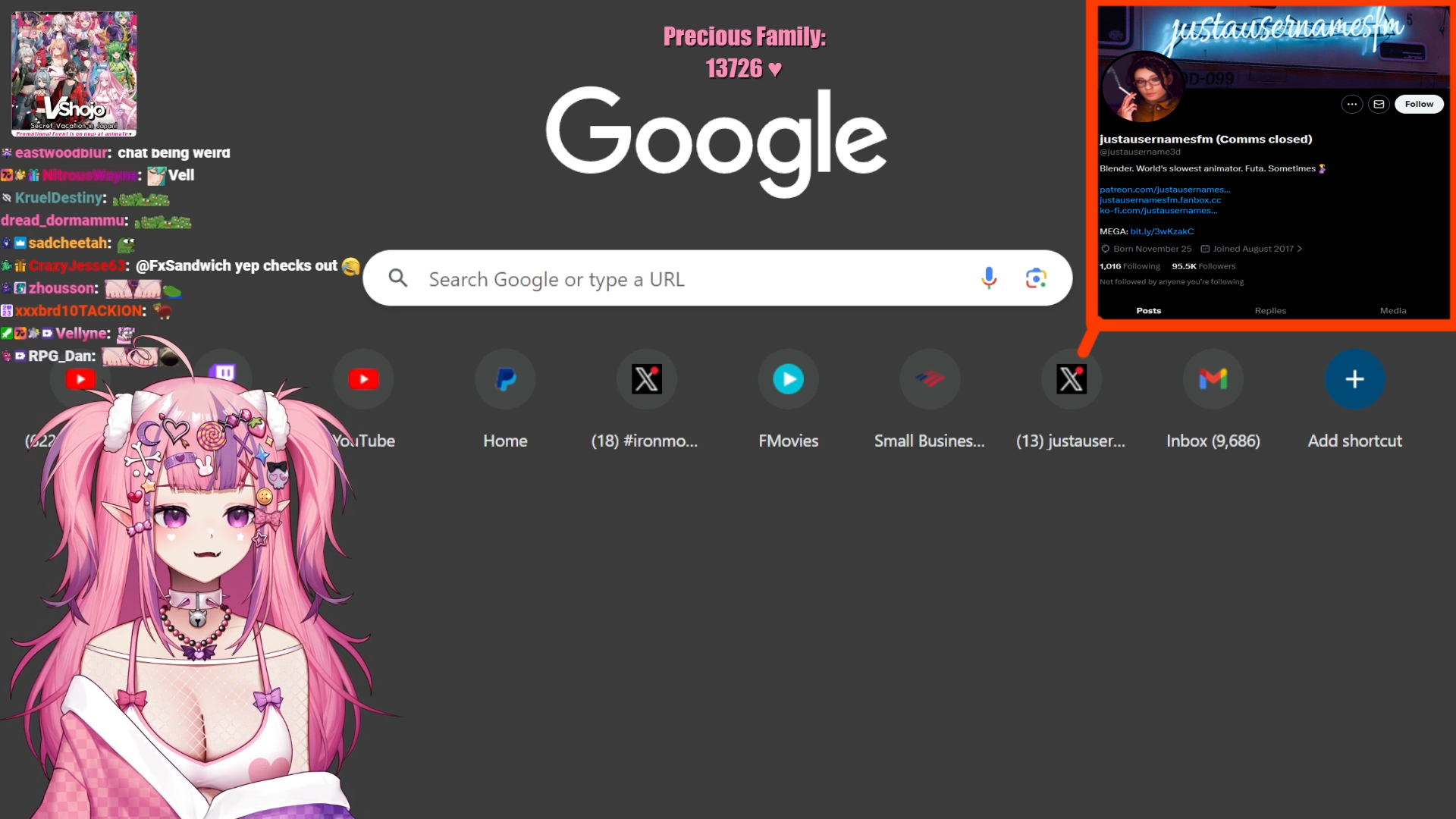 GeegaWelcome to /xvsj+/! A thread to discuss vtubers who were once associated with a hot pink company.Bait bad, Bussy good./xvsj+/ includes:Amalee - https://www.twitch.tv/AmaleeFroot - https://www.twitch.tv/apricotGeega - https://www.twitch.tv/geegaHaruka - https://www.twitch.tv/harukakaribuHenya - https://www.twitch.tv/henyathegeniusHime - https://www.twitch.tv/hajimeKson - https://www.twitch.tv/ksonsouchouKuro - https://www.twitch.tv/k9kuroMata - https://www.twitch.tv/matarakanMel - https://www.twitch.tv/projektmelodyMichi - https://www.twitch.tv/michimochieveeMomo - https://www.twitch.tv/momoMouse - https://www.twitch.tv/ironmouseNazuna - https://www.twitch.tv/amemiyanazunaNyan - https://www.twitch.tv/nyannersSilver - https://www.twitch.tv/silvervaleVei - https://www.twitch.tv/veiZen - https://www.twitch.tv/zentreyaNOVAHestia - https://www.twitch.tv/hestiahappinessHotaru - https://www.twitch.tv/akatsukidhotaruNagi - https://www.twitch.tv/NagIsekaiedPeke - https://www.twitch.tv/pekeispeakThe BeastiezBeri - https://www.twitch.tv/beribugKairyu - https://www.twitch.tv/kairyucrocodilePia - https://www.twitch.tv/piapiufoTori - https://www.twitch.tv/toriorianeDensetsu.EXEFeebee - https://www.youtube.com/@feebeechanchibiMint - https://www.youtube.com/@mintfantomeVicky - https://www.youtube.com/@vickyroman_idolRelated:/999/ + /総長/ + /nova/ + /voms/ for Japanese talents once associated with a hot pink company/lig/ and /big/ for more generalized + and friends discussionPrevious thread: >>110554641