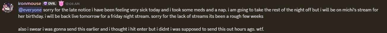 >>110581288Nope because Mouse doesn't give a shit about her community, if you notice she has entirely stopped saying precious family all together.
