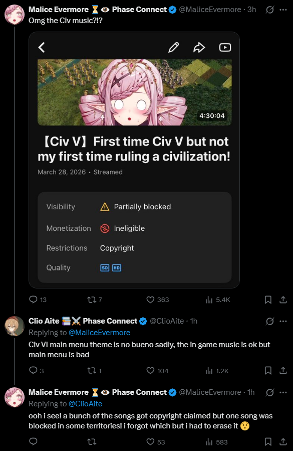The map hag knows all about the civ music fuckery on YouTubehttps://x.com/ClioAite/status/2037768840030109744