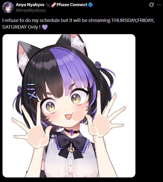 >will be streaming THURSDAY,FRIDAY, SATURDAY OnlyAnya post:https://x.com/AnyaNyabyss/status/2038681233602052407