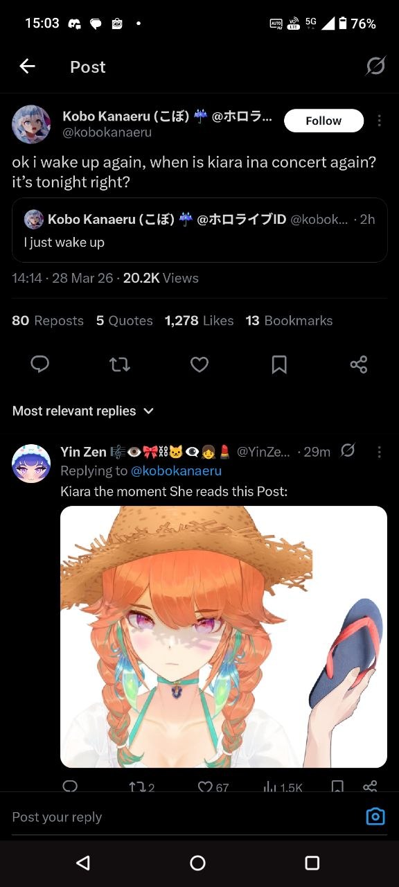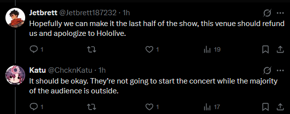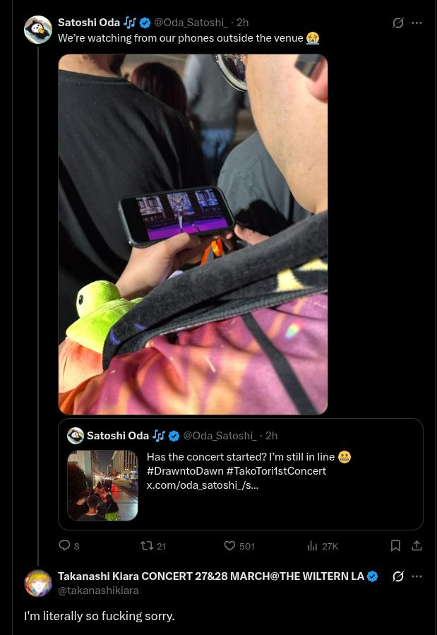 oh no kiara is starting to reply to the people that tweeted about being stuck in line while the concert had already started this is going to ruin her night