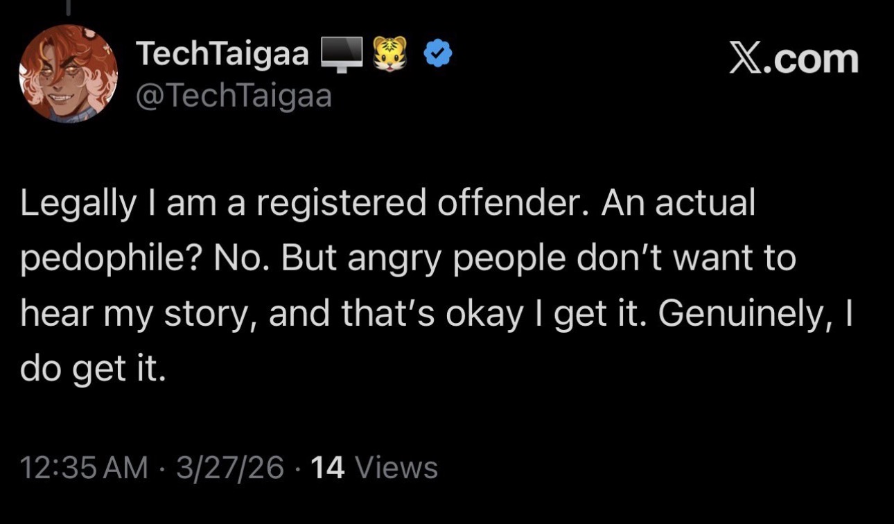 >>110606870To be COMPLETELY 100% FAIR, you can wind up with that label for pissing in a playground or park while piss drunk