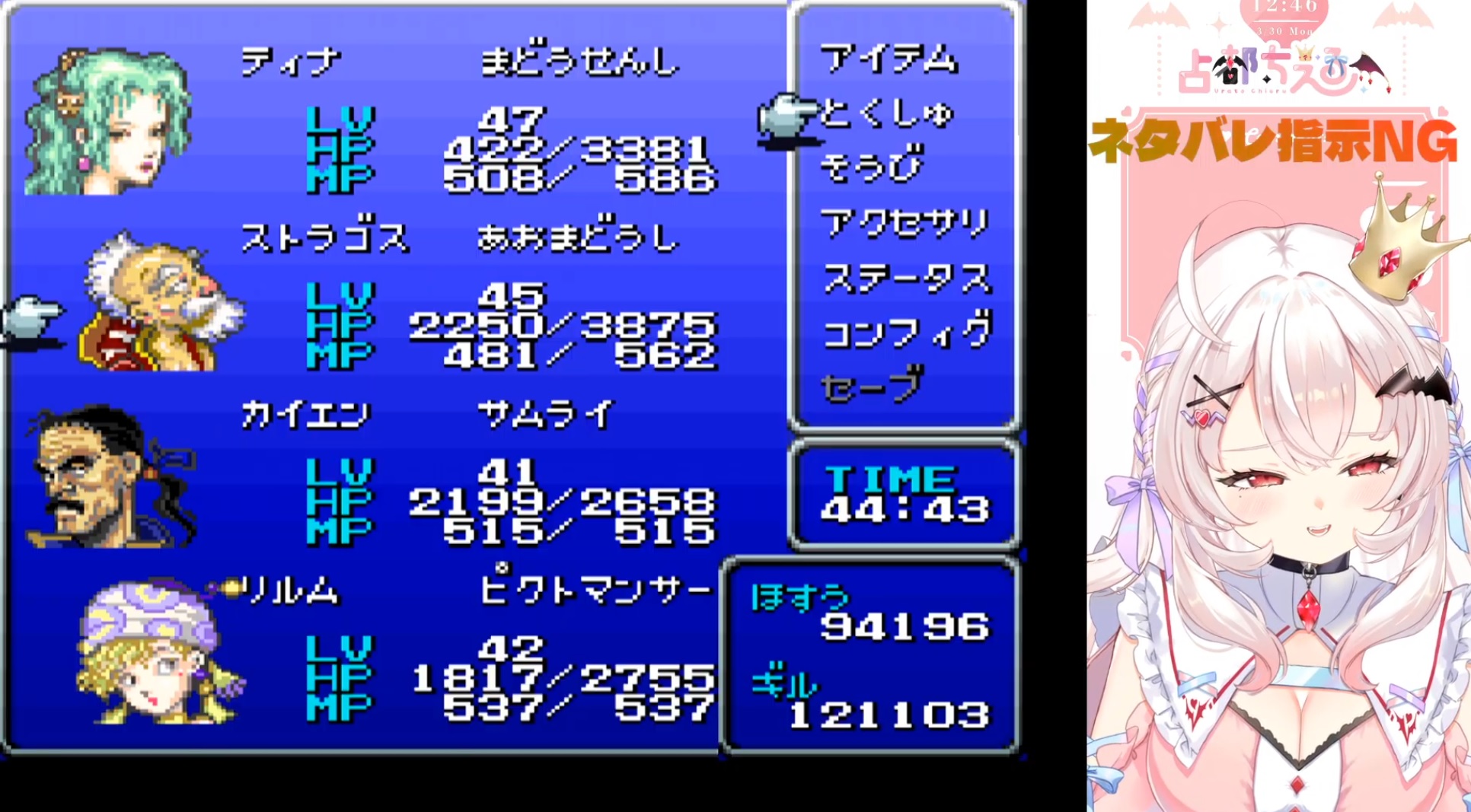 Urato Chieru is playing Final Fantasy 6 https://www.youtube.com/watch?v=LIjUIxRiSCQ