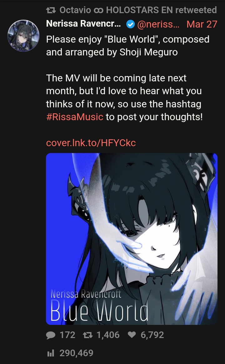 sorry wuffian my oshi will do everything possible to promote her new song stream Blue World btw
