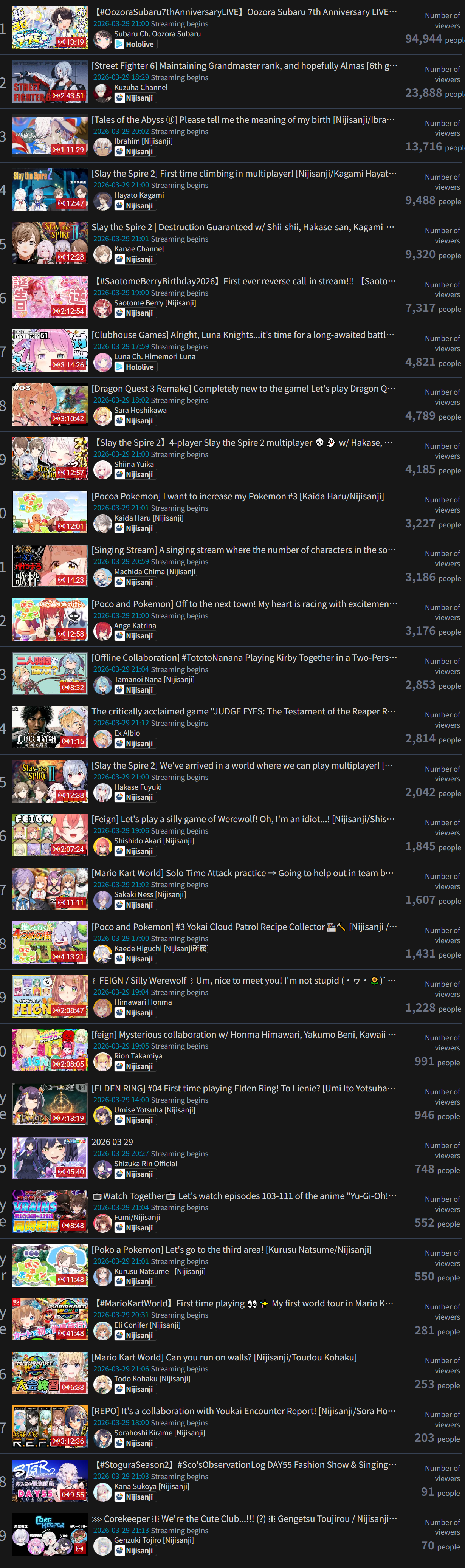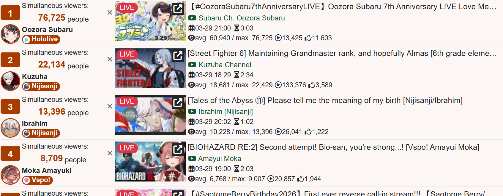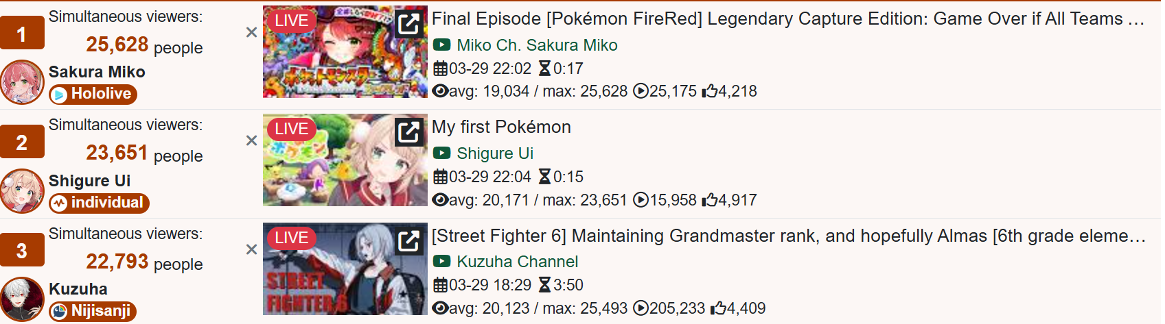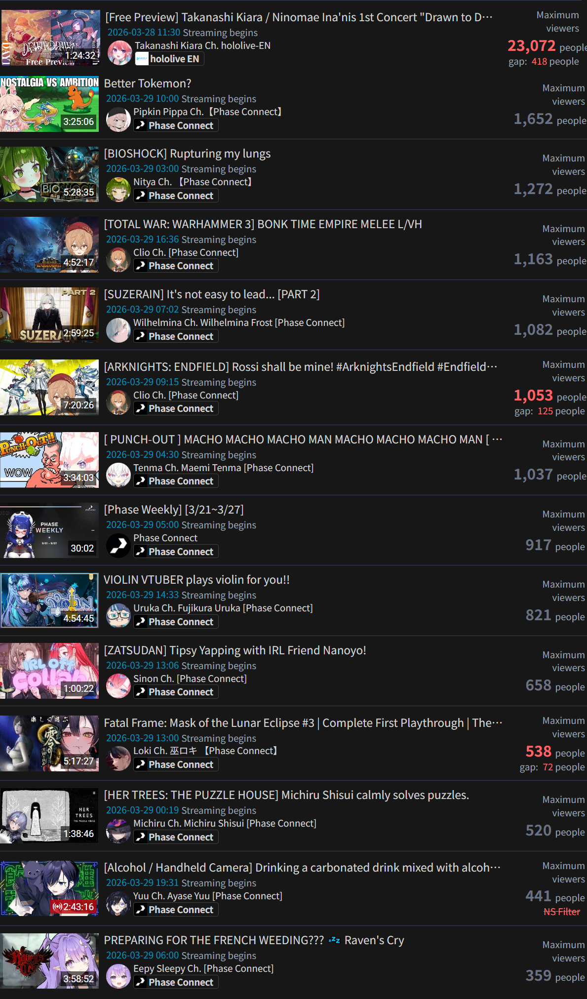 >is there a clear drop in viewership for vtubers