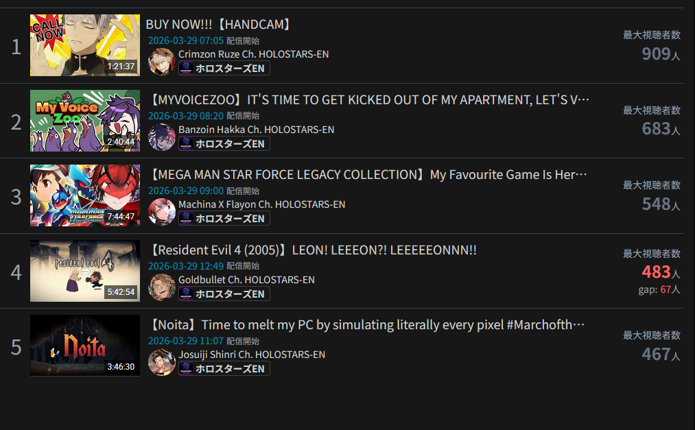 VSPO EN doesn't seem to get much support and they don't get nearly as much presence in Asia but it's not a fair comparison when some of the weakest niji EN girls already graduated.