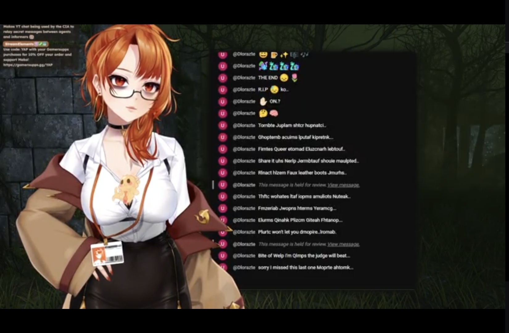 >Jets (Jean Faymas): Vampire: The Masquerade - Bloodlineshttps://www.twitch.tv/jeanfaymas>Kana Bonana (Oni Kana): Firewatchhttps://www.twitch.tv/onikana>Operator Grizz: Grand Theft Auto Vhttps://www.twitch.tv/operatorgrizz_vt
