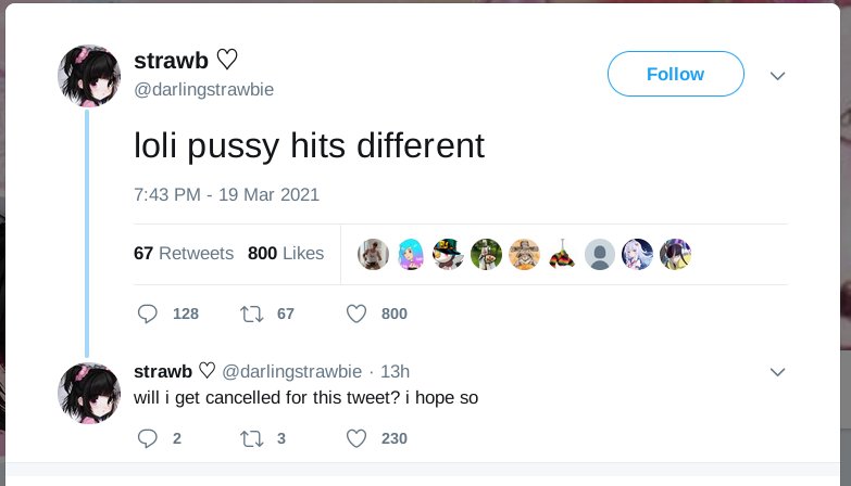 >>110638765Didn't you know that after girls find Jesus they are a completely different person body and soul?So that 2021 strawb is literally a someone else.The Bible says so.