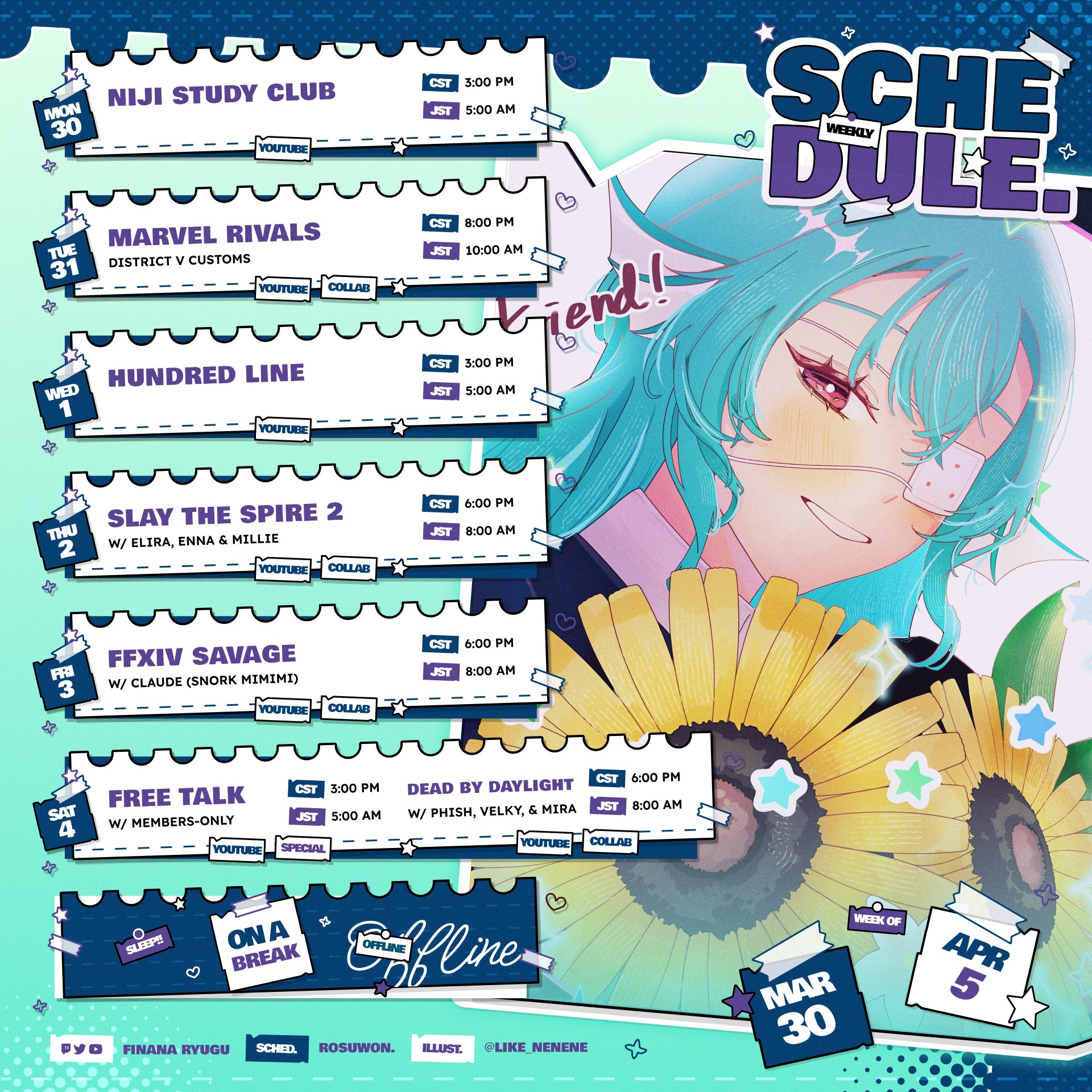 Nijisanji EN YouTube channels:https://www.youtube.com/@nijisanji_en/channelsX:https://x.com/NIJISANJI_Worldhttps://x.com/i/lists/1415262975435231235LazuLight:https://x.com/EliraPendorahttps://x.com/FinanaRyuguOBSYDIA:https://x.com/Petra_GurinEthyria:https://x.com/MillieParfaithttps://x.com/EnnaAlouetteLuxiem:https://x.com/Luca_Kaneshirohttps://x.com/Shu_Yaminohttps://x.com/Vox_AkumaNoctyx:https://x.com/Sonny_Briskohttps://x.com/Uki_Violetahttps://x.com/Alban_KnoxILUNA:https://x.com/MariaMari0nettehttps://x.com/AiaAmarehttps://x.com/ScarleYonagunihttps://x.com/RenZott0XSOLEIL:https://x.com/D_Dropscythehttps://x.com/MelocoKyoranhttps://x.com/Ver_VermillionKrisis:https://x.com/VezaliusBandagehttps://x.com/Tyrant_Vantahttps://x.com/YuQWilsonTTT:https://x.com/ClaudeClawmarkDenauth:https://x.com/RyomaBarrenworthttps://x.com/KlaraCharmwoodBY THE BEAT:https://x.com/by_the_beathttps://x.com/Seible_2434https://x.com/KaelixDebonairhttps://x.com/Freo_2434https://x.com/ZealGinjokaTeamup schedule for Nijisanji EN:https://teamup.com/kstk7egnopr3xiqj4hTo watch streams at the same time:https://niji-mado.chats.ninja/homeGraduated Livers and Miscellaneous:https://rentry.org/7k4s6manReminder to ignore bait, shitposting, samefags, discordfags, numberfags, tribalfags, and falseflaggers.Previous thread: >>110631432
