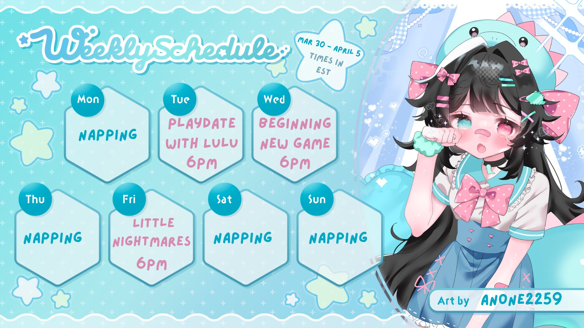https://www.youtube.com/watch?v=1BZFJKeqIz0vexie zatsuhttps://www.youtube.com/watch?v=IXx-Bl-HzbAramu dave the diverhttps://www.twitch.tv/rikowavriko tomodachi lifehttps://www.twitch.tv/astreacolornaturaastrea music