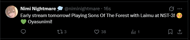 >>110660011>Nimi 3 hours early stream>one the one day of the week she streams and randon doesn't