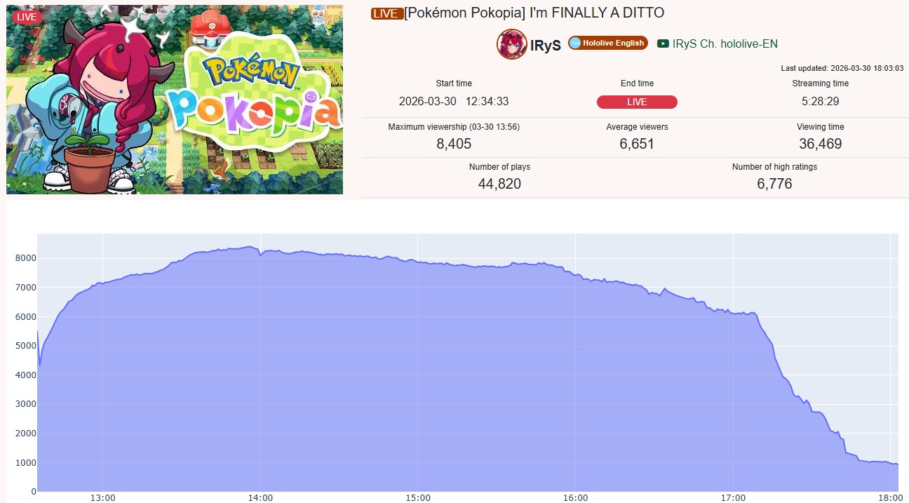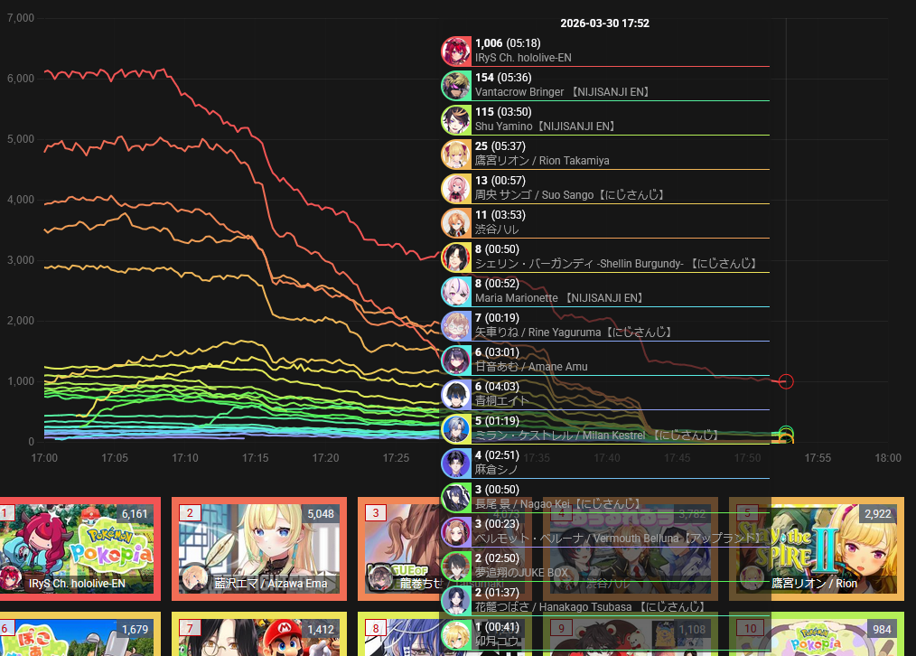 >>110663131>>110663132NTA but I don't remember IRyS mentioning it (if she did, it must've been really brief if it escaped my notice). That cull kicked in when she already started reading SC so she probably didn't pay attention to CCV at that point.Dropped her average by 1K, though. That was pretty brutal seeing it only affected the last 1hr of her almost 6hrs long stream